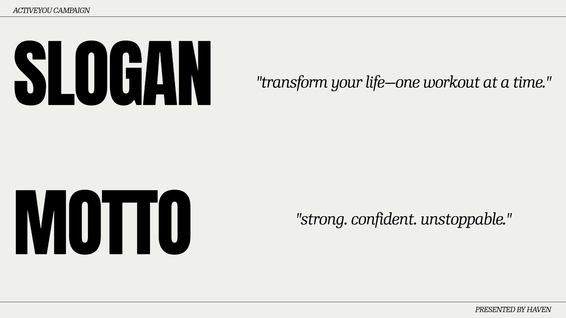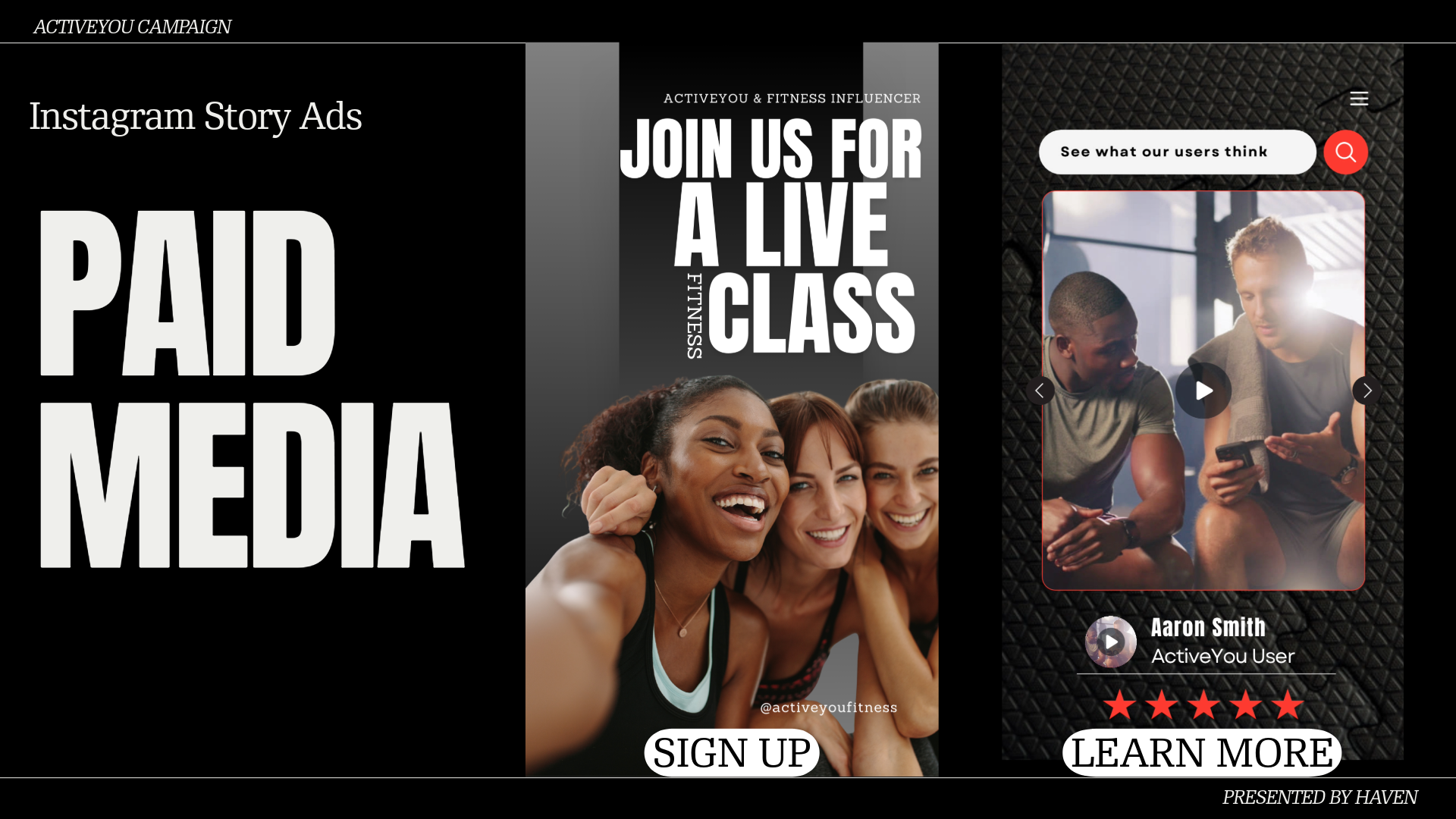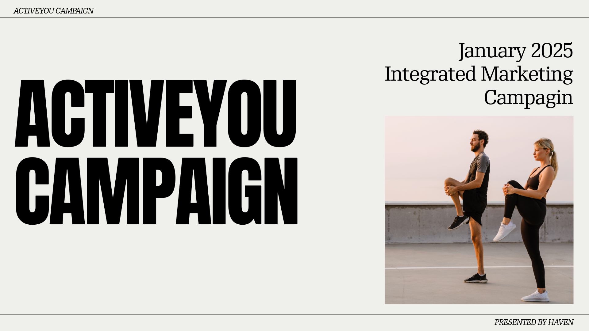 Designed an integrated marketing campaign for ActiveYou, creating assets across paid, owned, and earned media channels. Developed a new logo and crafted a lean brand guide. **following the creation of the ActiveYou marketing strategy**
